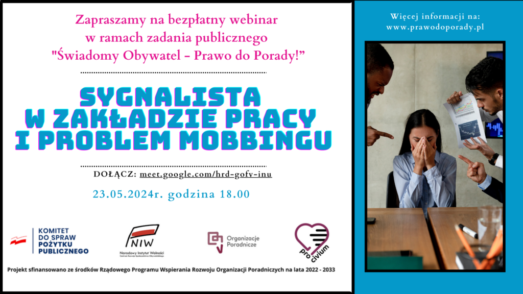 Webinar sfinansowany przez Narodowy Instytut Wolności – Centrum Rozwoju Społeczeństwa Obywatelskiego w ramach Rządowego Programu Wspierania Rozwoju Organizacji Poradniczych na lata 2022 – 2033.